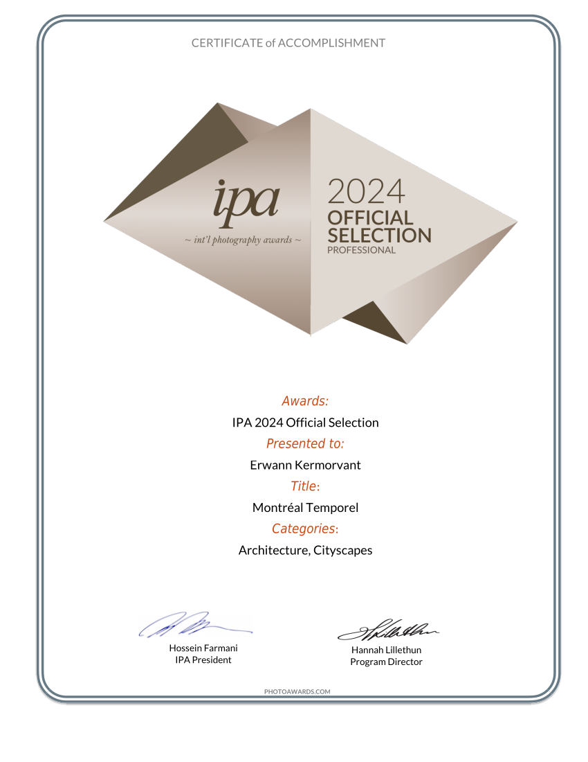 2 Médailles d’or - European Photography Awards - 2024 - Catégorie: cityscape, open theme